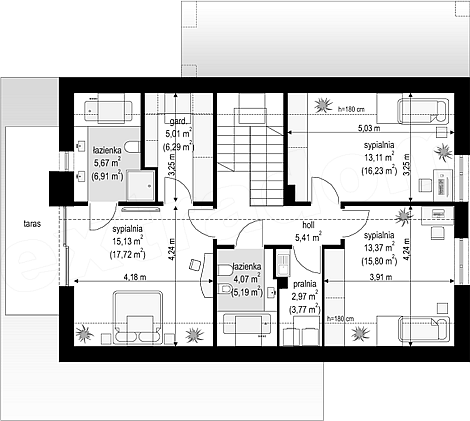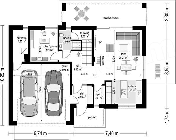 przedsionek), ewentualnie można wydzielić pomieszze na piętrze.